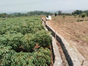 Lanjut mang Dodo, untuk pekerjaan dengan panjang 550 meter dan tinggi 80 cm x lebar 30 meter dan ini. Baru selesai 50% dengan banyaknya pekerja 15 orang dari Sindang Panon dan Arjasari. Ketika di tanyakan soal HOK untuk tukang 150 ribu dan laden 120 ribu per hari.