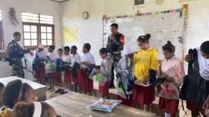 “Kedatangan personel Satgas di sambut dengan riang. Anak-anak sangat antusias, tampak raut kegembiraan di wajah mereka. Harapannya dengan pembagian perlengkapan sekolah ini anak-anak akan semakin giat dan semangat dalam belajar,” tambah Dansatgas.